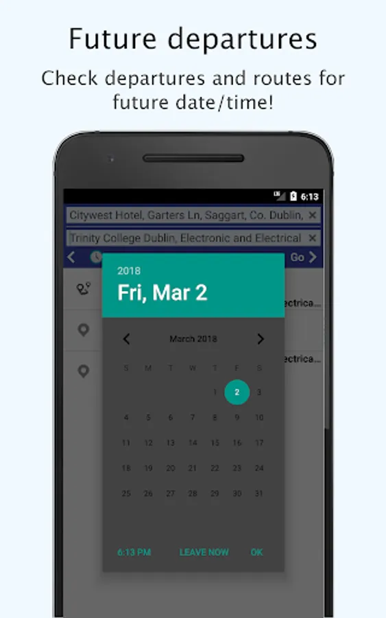 Search places or location of interest and get nearby departures to that place. Search and get transit route to the places, from your location or between any two locations.