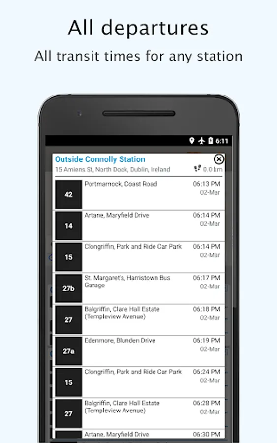 Public Transport Departures timetable for Train, Tram, Bus from (Transport for Ireland) TFI, DART, Dublin Bus and many more!