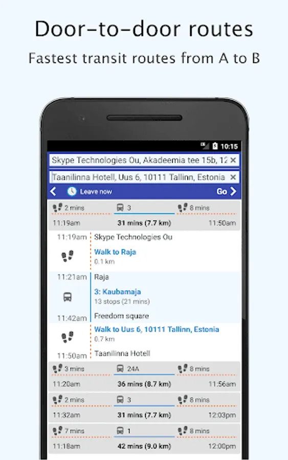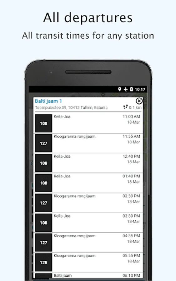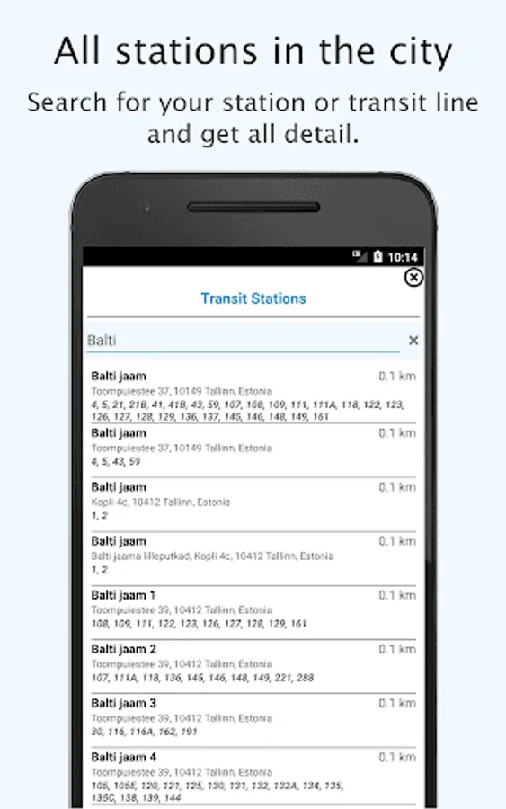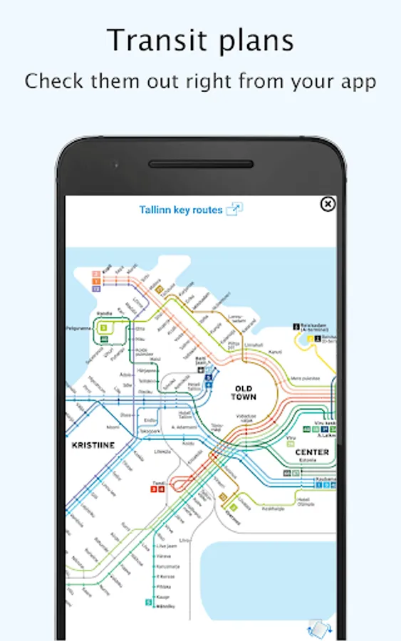 Transit routes, offline timetable and network maps for Tram, Bus, Train from Tallinna Linnatranspordi (TLT) and many more!