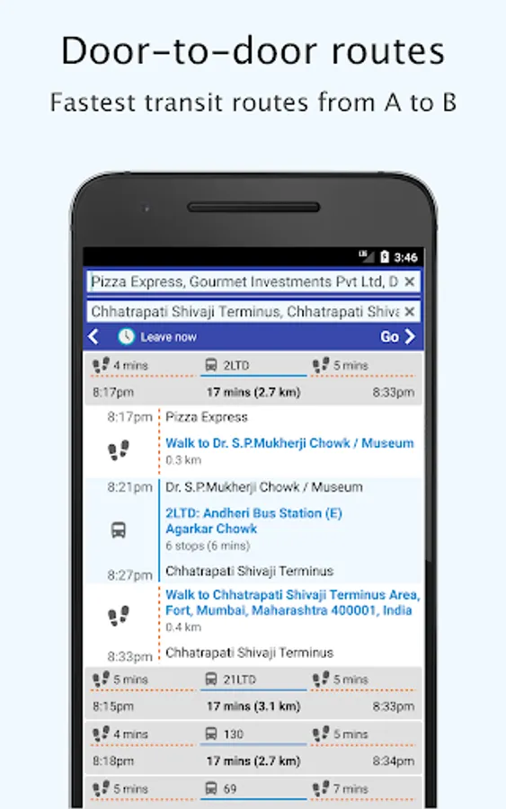 Navigate your city with optimal transit routes, hassle-free using Trains, Metro, Subway, Buses, Trams, Ferries / boats, Underground...