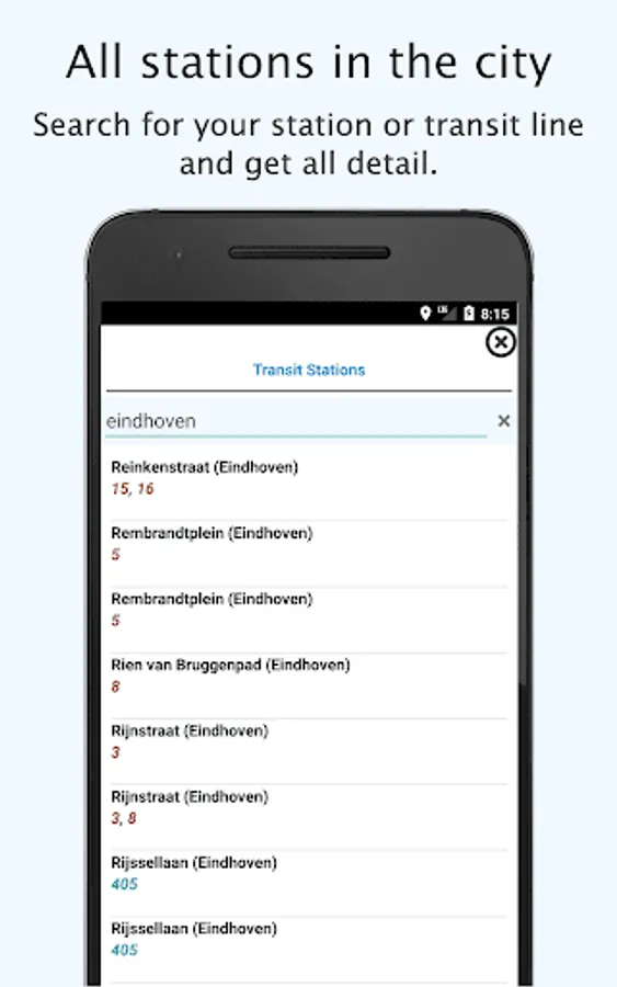 Complete searchable list of all stations with addresses and connections in the city and region. Search for any line, check all stops and jump to any stop - All available offline.