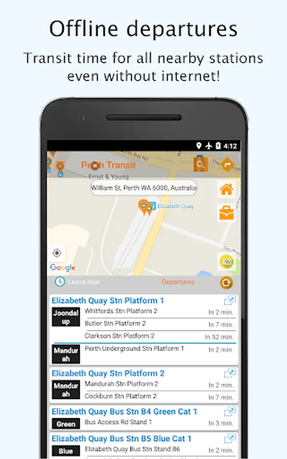 Public Transit routes and offline departures timetable for Train, Tram, Bus, Ferry from Transperth, Transwa and many more!