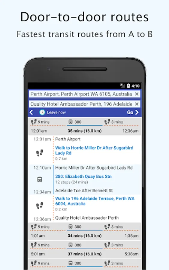 Navigate your city with optimal transit routes, hassle-free using Trains, Metro, Subway, Buses, Trams, Ferries / boats, Underground...