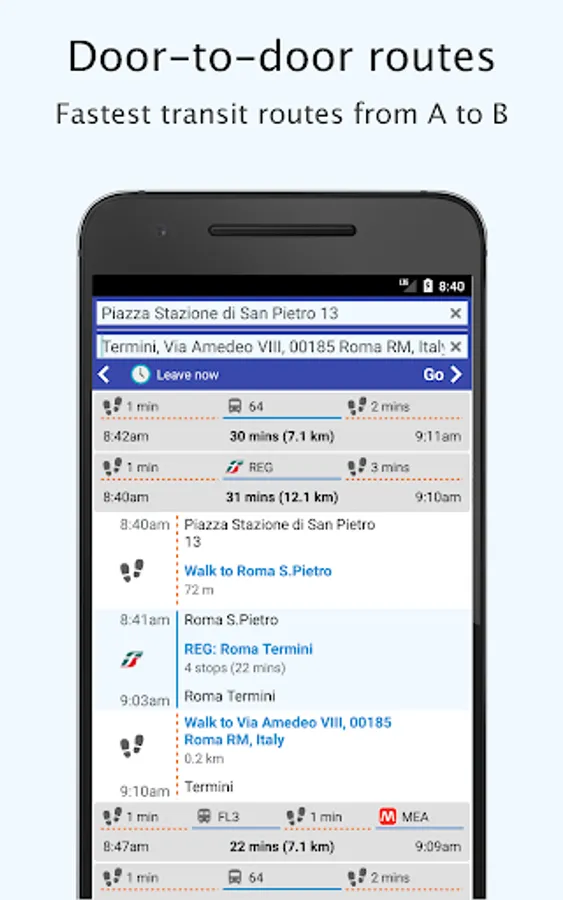 Navigate your city with optimal transit routes, hassle-free using Trains, Metro, Subway, Buses, Trams, Ferries / boats, Underground...
