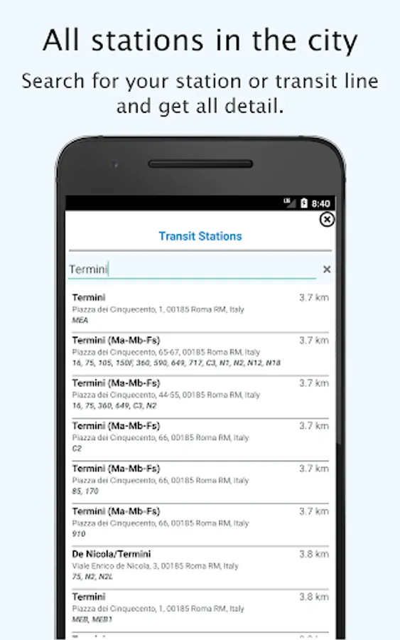 Complete searchable list of all stations with addresses and connections in the city and region. Search for any line, check all stops and jump to any stop - All available offline.