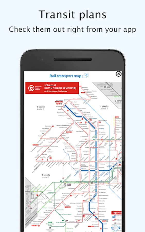 Offline timetable and network maps for Tram, Bus, Light rail, Metro from Zarząd Transportu Miejskiego (ZTM), Szybka Kolej Miejska (SKM), Metro Warszawskie (WKD), Miejskie Zakłady Autobusowe (MZA), Tramwaje Warszawskie and many more!