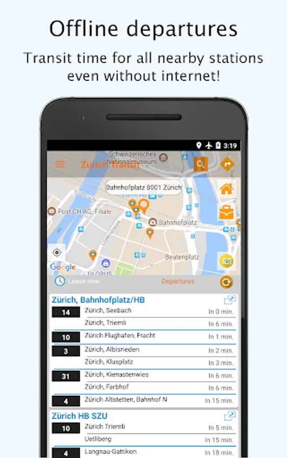 Public transit time for all stops in the city even WITHOUT INTERNET. Check transit plans, search stations, departure lines and navigate to them in offline mode.