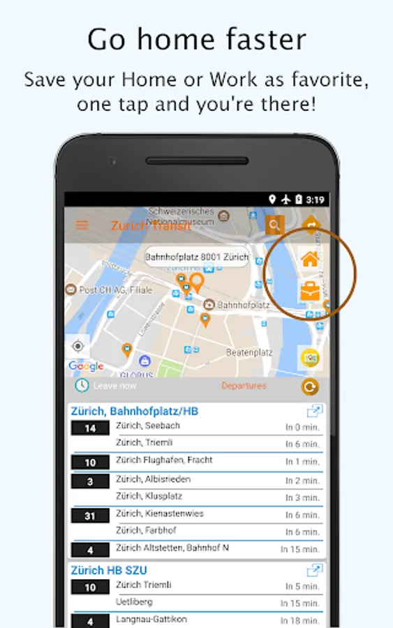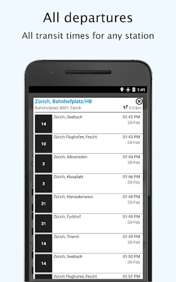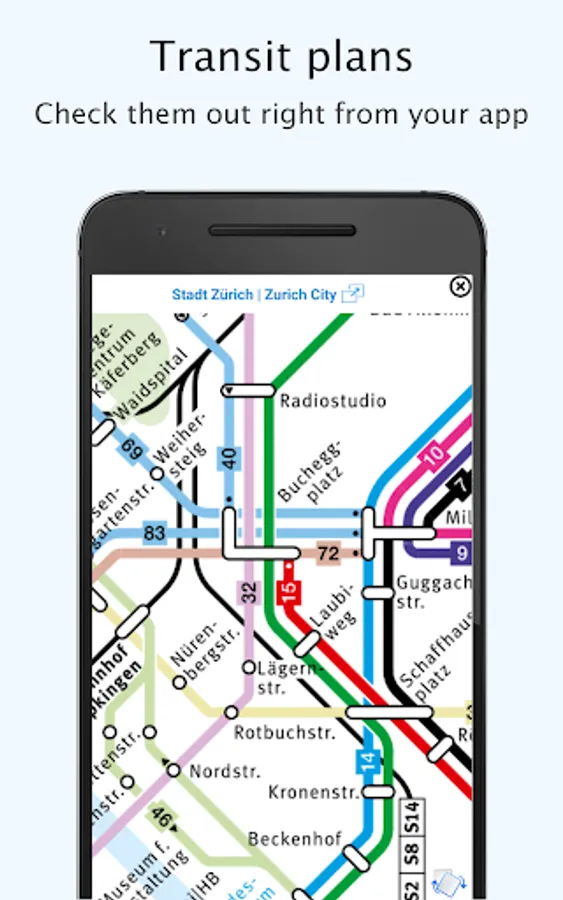 Transit routes and offline departures timetable for Tram, Bus, S-bahn, Trolleybus from Zürcher Verkehrsverbund (ZVV), Verkehrsbetriebe Zürich (VBZ) and many more!
