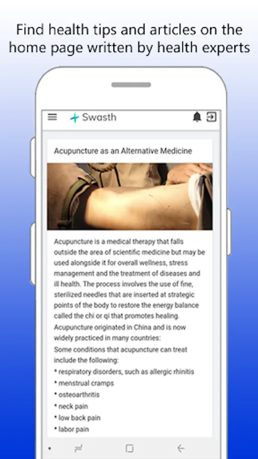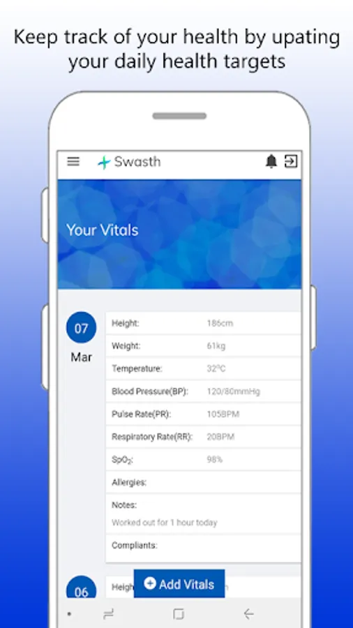 Swasth is a cloud-based interconnecting app and web application between the patient and the medical establishment providing an opportunity to patients to have easily access their medical records with just three clicks to be better involved and informed in their care, thus decreasing patient waiting times and increasing the quality of care while at the same time reducing cost.