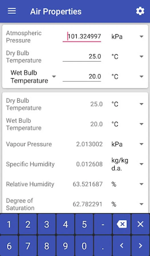 Type known properties in text-boxes. You will get calculated properties. You can choose known property using drop-down menu. You can also change unit of property using drop-down menu.