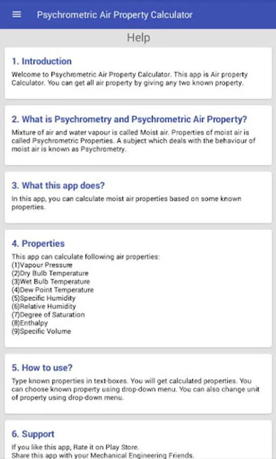 This app is Psychrometric Air Property Calculator which is useful for Refrigeration and Air Conditioning Course.