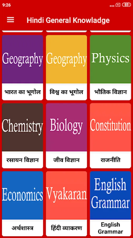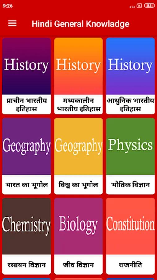 n this GK Hindi ( General Knowledge in hindi app ) application we will cover all the topics like India Gk, Gk Questions, Computer GK, Hindi Grammar GK, World Gk, Sports Gk, History Gk Indian Army Gk...