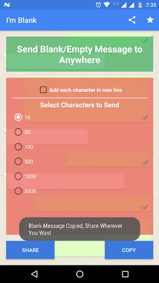 Lets send blank messages to every messenger apps, do disturb your friends and colleagues.