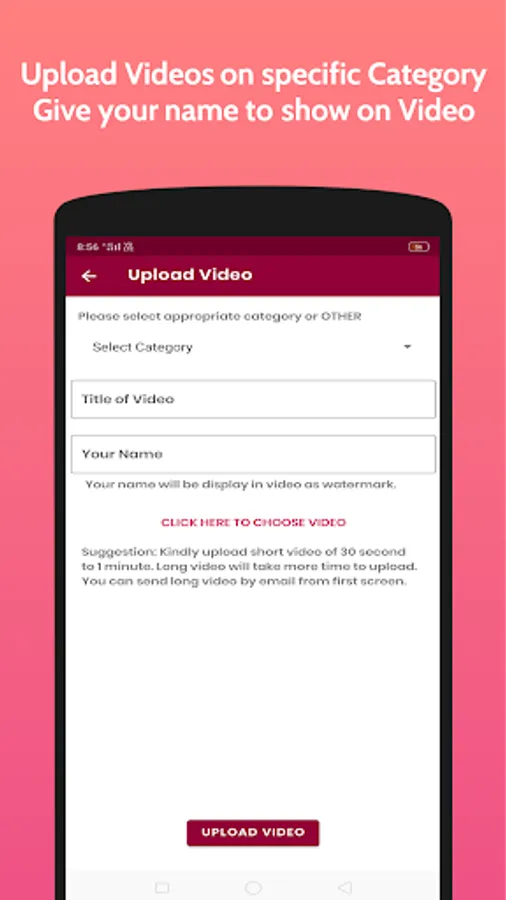 - Upload Video by any User with his/her name on the video
