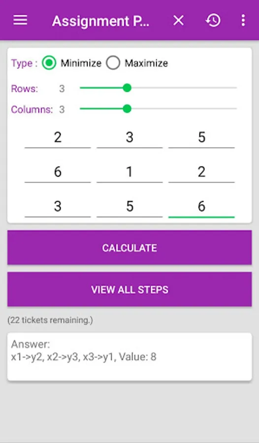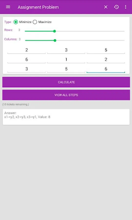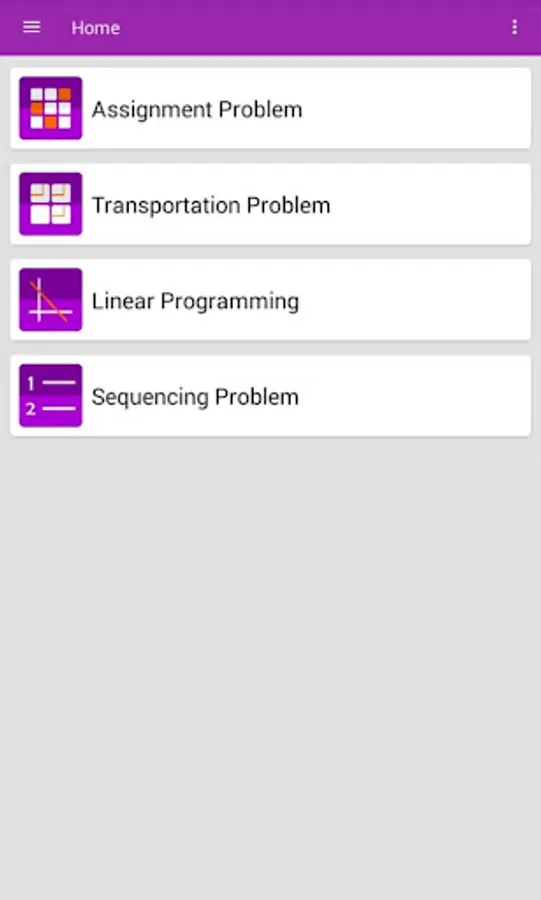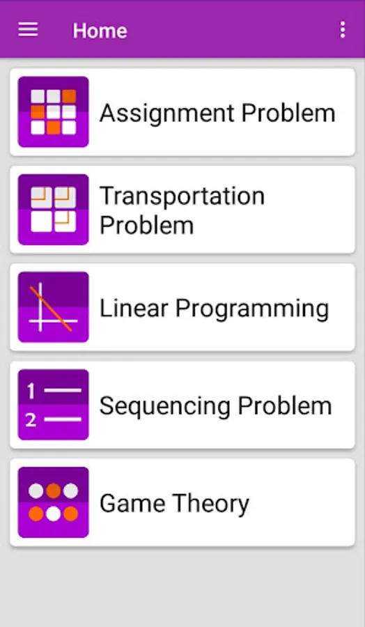This app is Solver or Calculator for Operational Research(Industrial Management) problems like Assignment Problem, Transportation Problem, Linear Programming, Sequencing Problem and Game Theory.