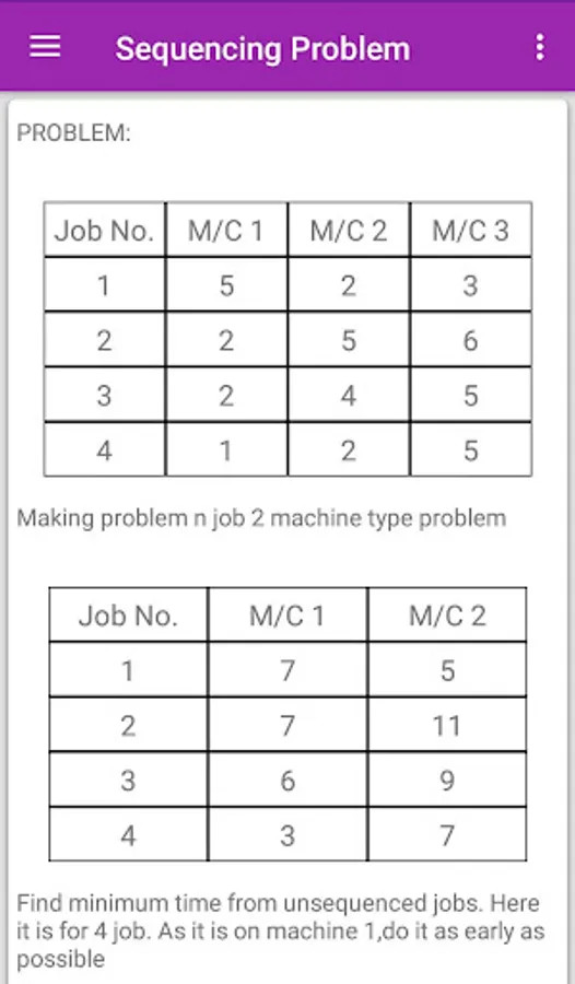 -Shows all steps and time and idleness calculation in Sequencing problem.
