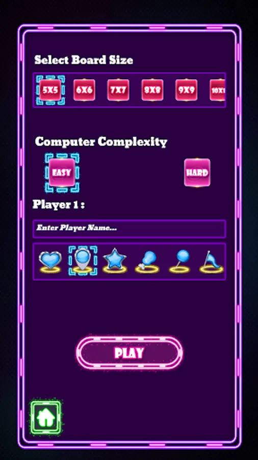 3. Multiple board sizes (from 5x5 dots to 10x10)