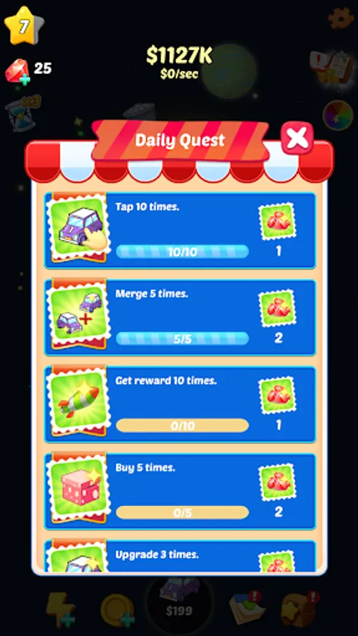 Every so often, you’ll be gifted with a car. The main objective of game is to fusion two cars low level to get another with higher level.