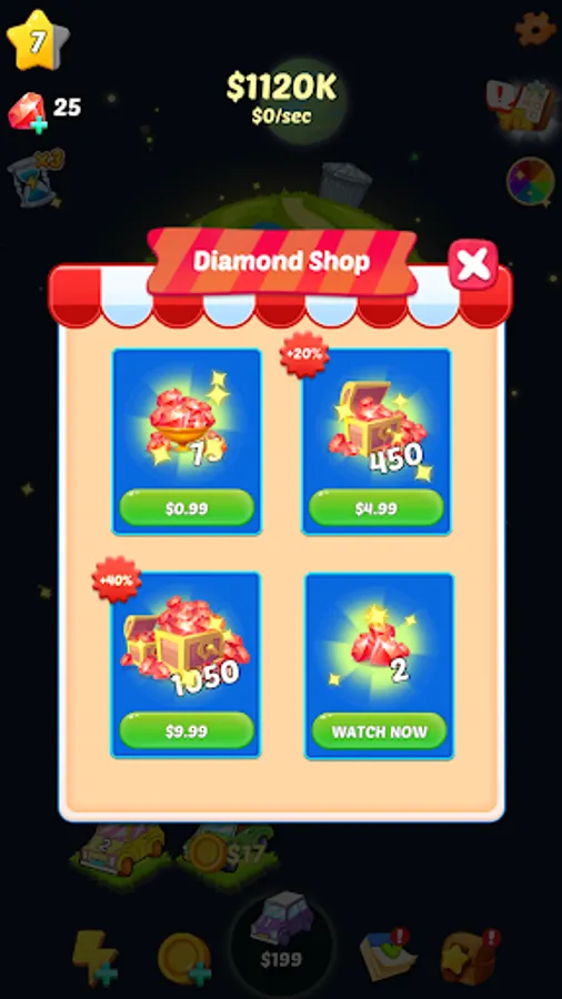Upgrade cars or equipment to earn more coins.Speed up to fast earning money by diamonds