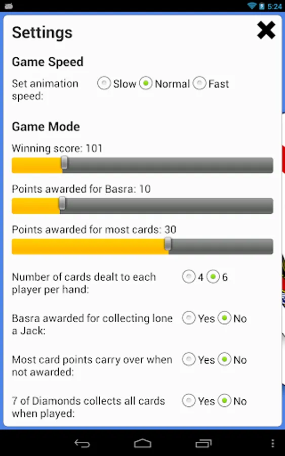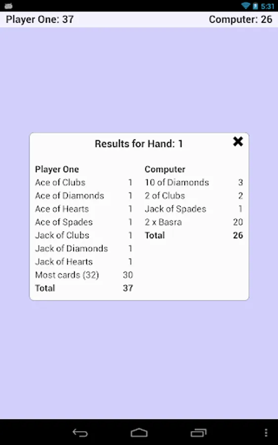 Basra is a popular fishing card game played throughout the Middle East. This game is based on the versions played in Lebanon, Egypt and Turkey.