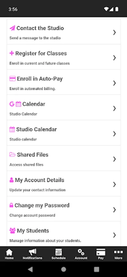 The SWAY app allows you to manage your account with ease, make payments, register for classes, parties, and special events. You'll also receive important notifications about class changes, closings, registration openings, special announcements, and upcoming events.