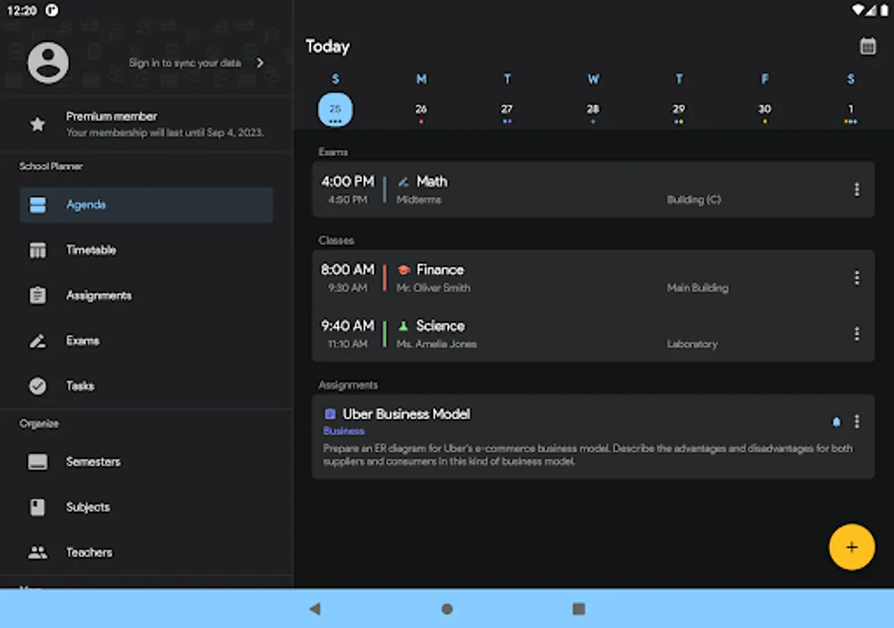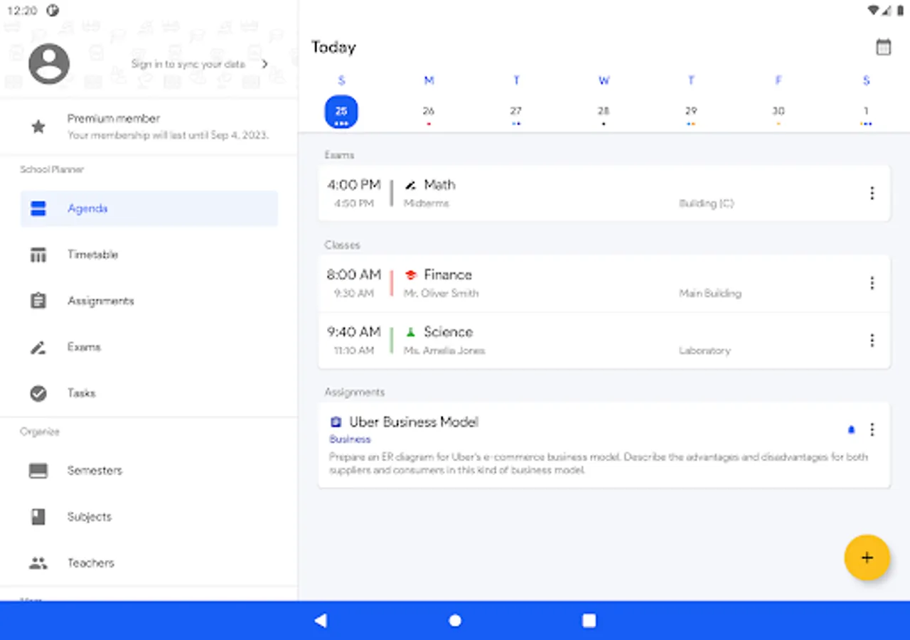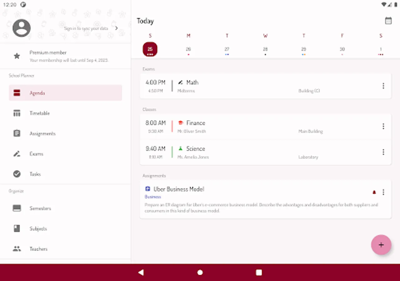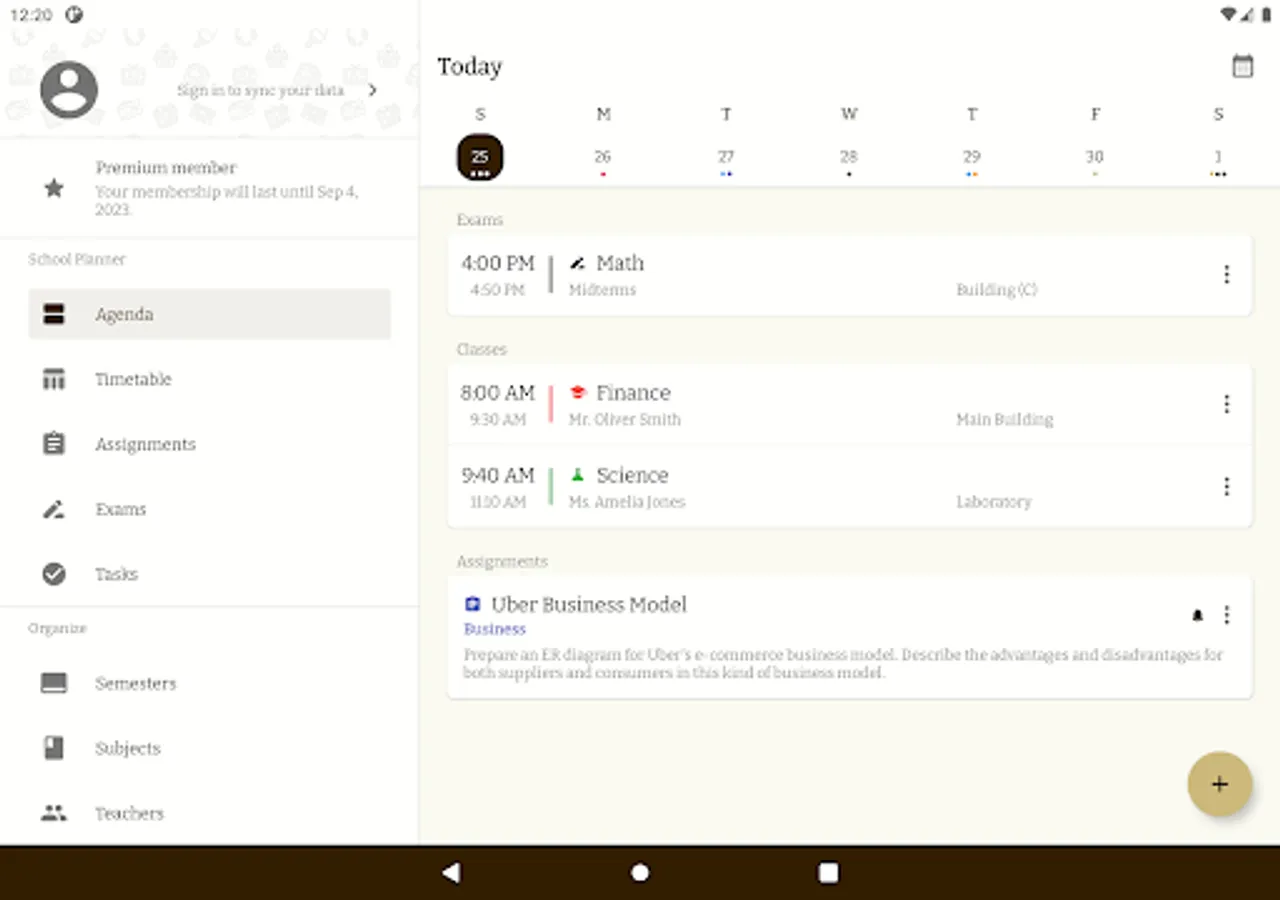 You can easily create and manage your classes, assignments, and exams. All will be shown in your Agenda where you can find your daily plan. From there, you can manage your events or cancel a single class in case of emergency events.