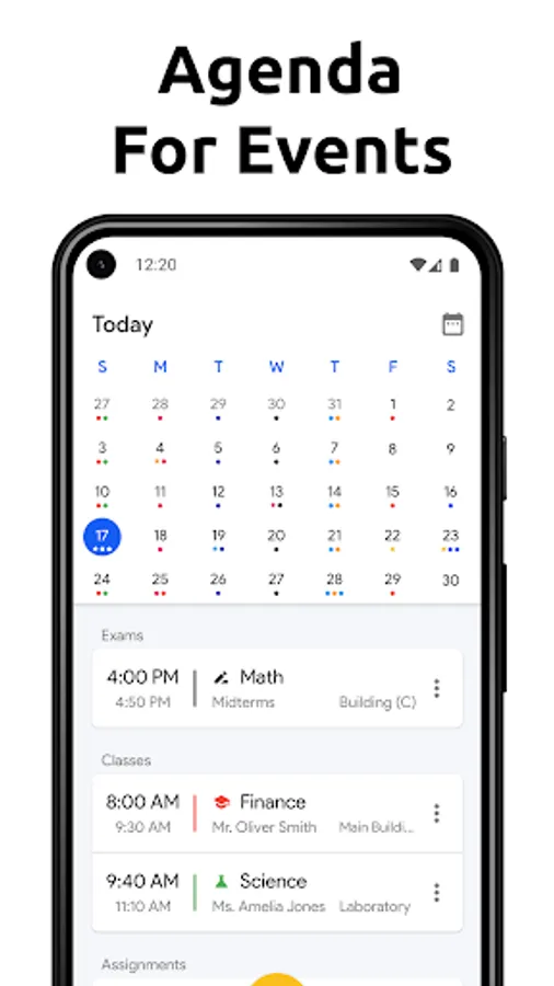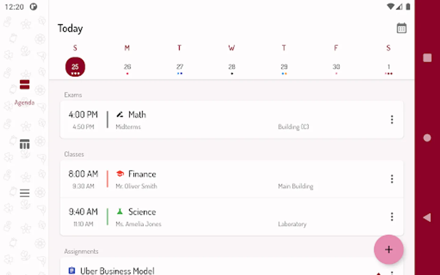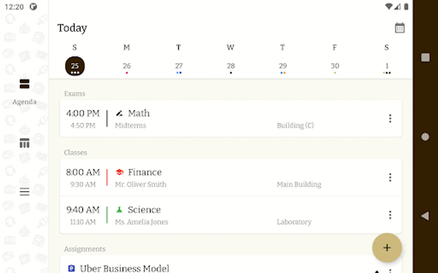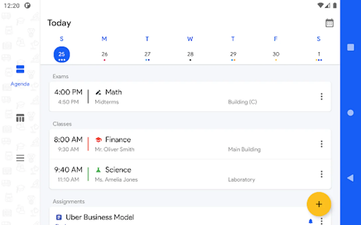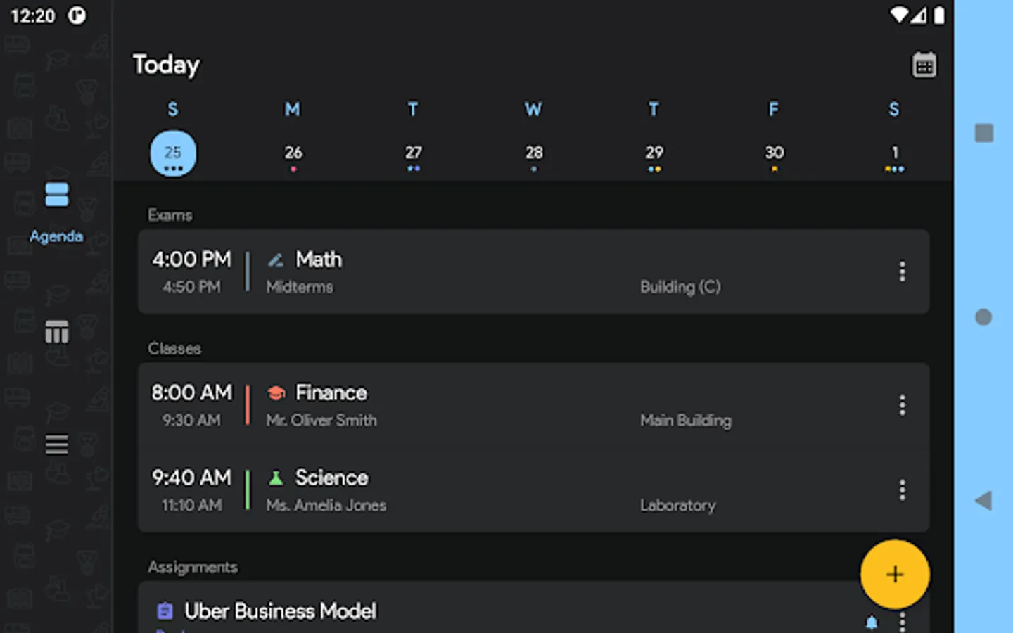 You can easily create and manage your classes, assignments, and exams. All will be shown in your Agenda where you can find your daily plan. From there, you can manage your events or cancel a single class in case of emergency events.