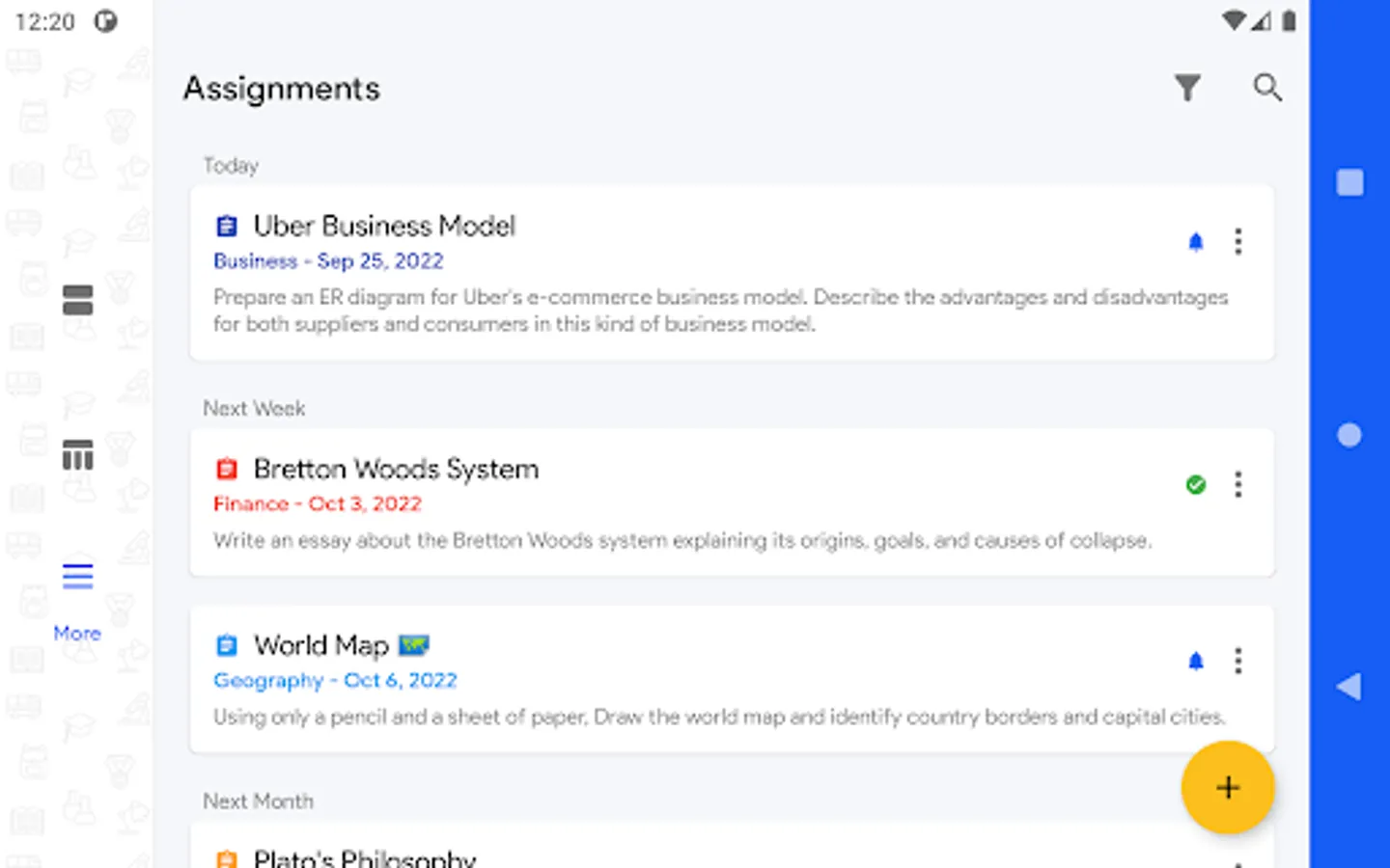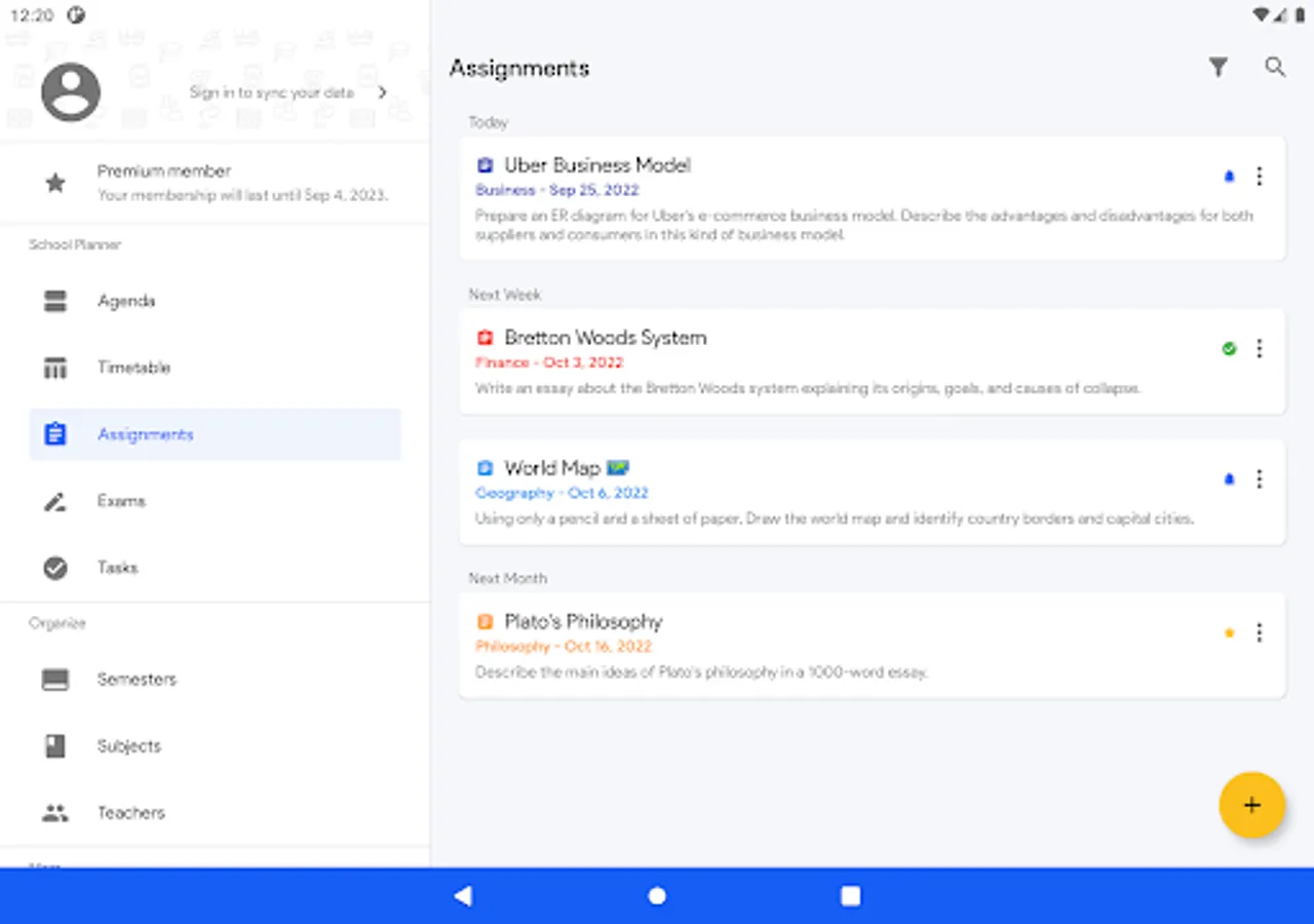 Whether it's classes, assignments, tasks, or exams, School Planner is your partner to keep an eye on your progress and stay organized.