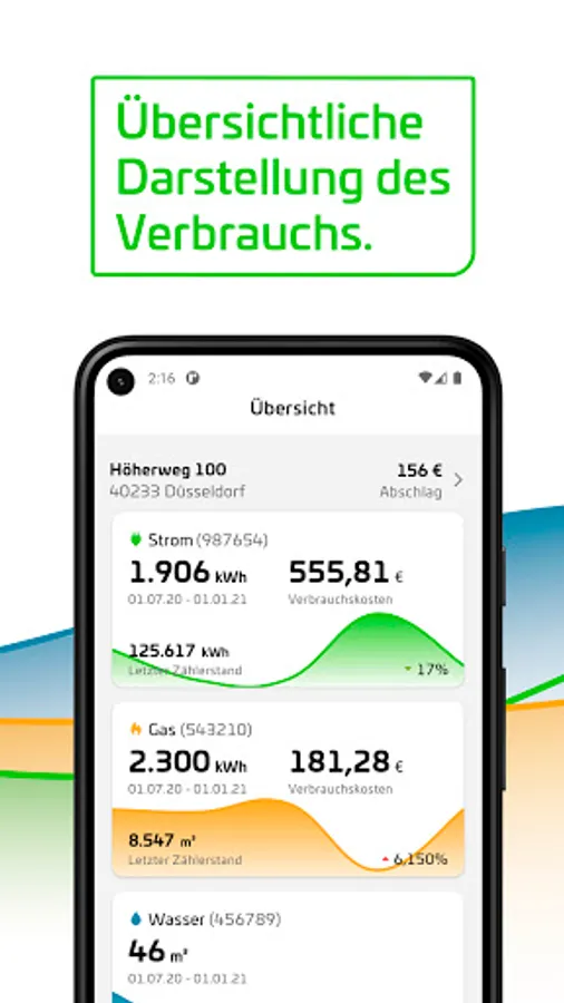As a customer of Stadtwerke Düsseldorf, you can always keep an eye on your energy consumption with our free ServiceApp - whether it's electricity 💡, gas 🔥, water 💧 or heat 🌡️.