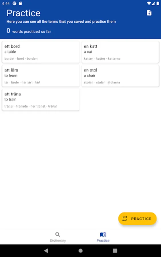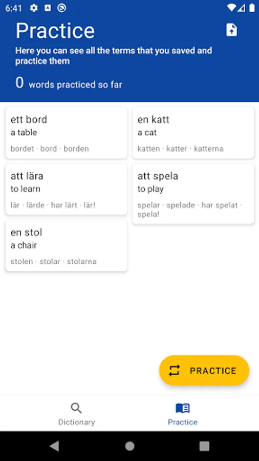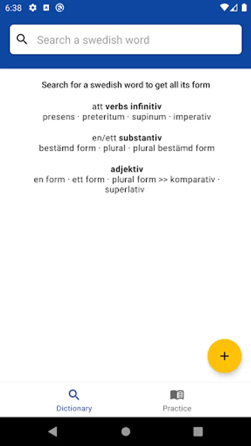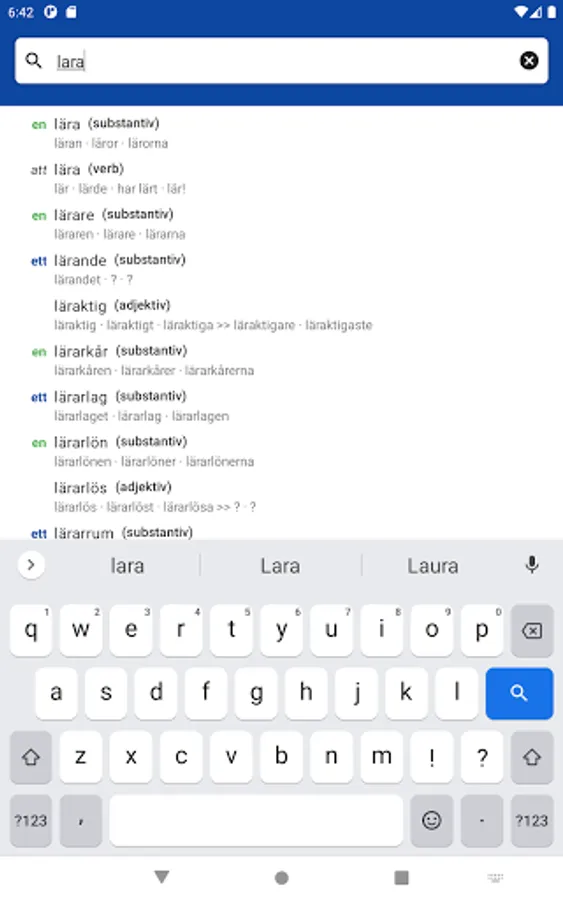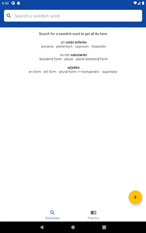 This app is a complete dictionary of the Swedish language.