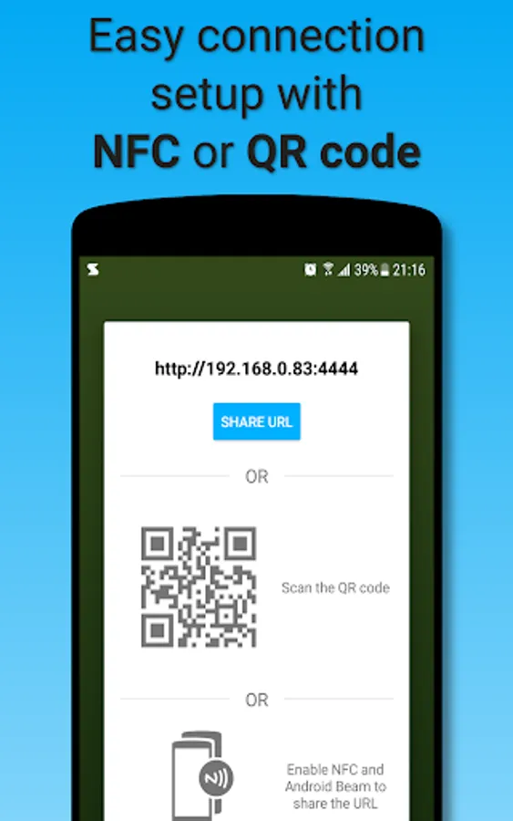 • Share your device's URL easily with Android Beam (NFC) or a QR Code