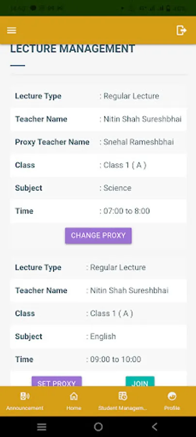 π Lecture Management: Manage lectures, join them as assigned, or assign a proxy of your class to substitute teachers.