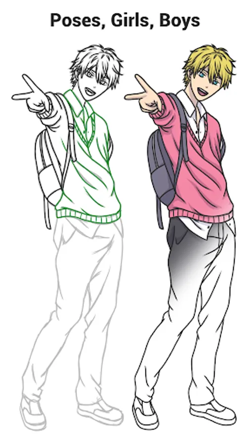 You can choose multiple drawings from different categories: anime eyes, hairstyles, poses, anime girls, anime boys and much more.