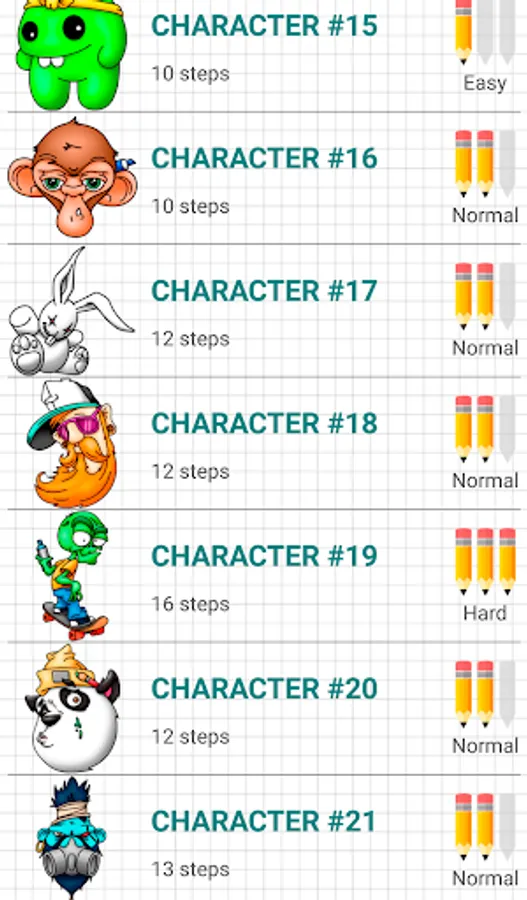 In simple steps allow you to perform fantastic drawings, just take a paper and a pencil, choose the draw you like and follow step by step instructions. It is very easy to use.