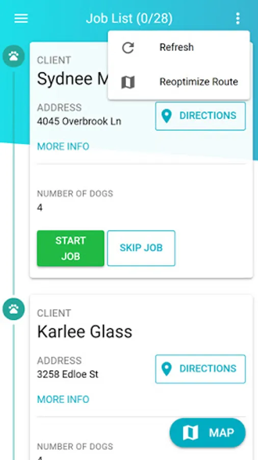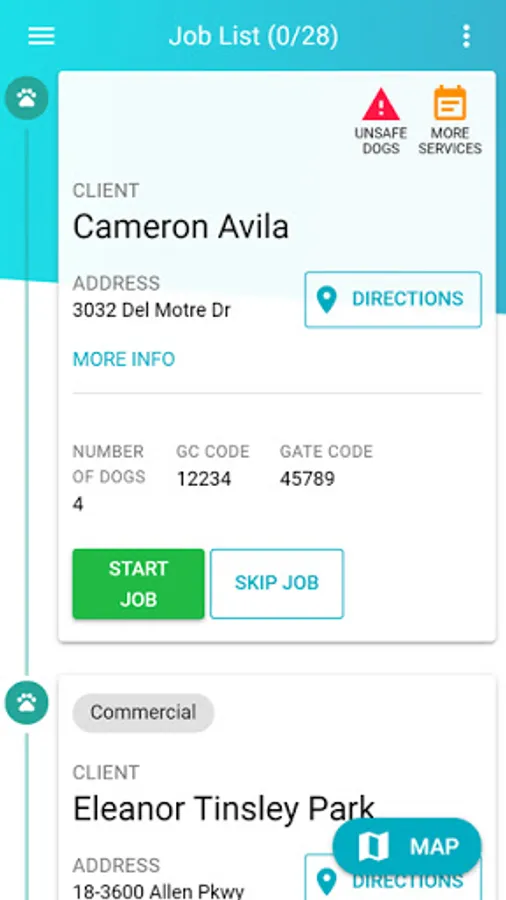 Field technicians can use the app to quickly review their scheduled jobs, start and finish jobs as well as send notifications to clients.
