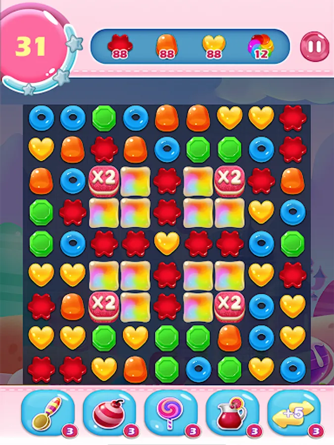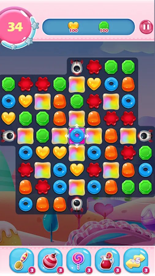 Switch and match Candies in this tasty puzzle adventure to progress to the next level for that sweet winning feeling! Solve puzzles with quick thinking and smart moves, and be rewarded with delicious!
