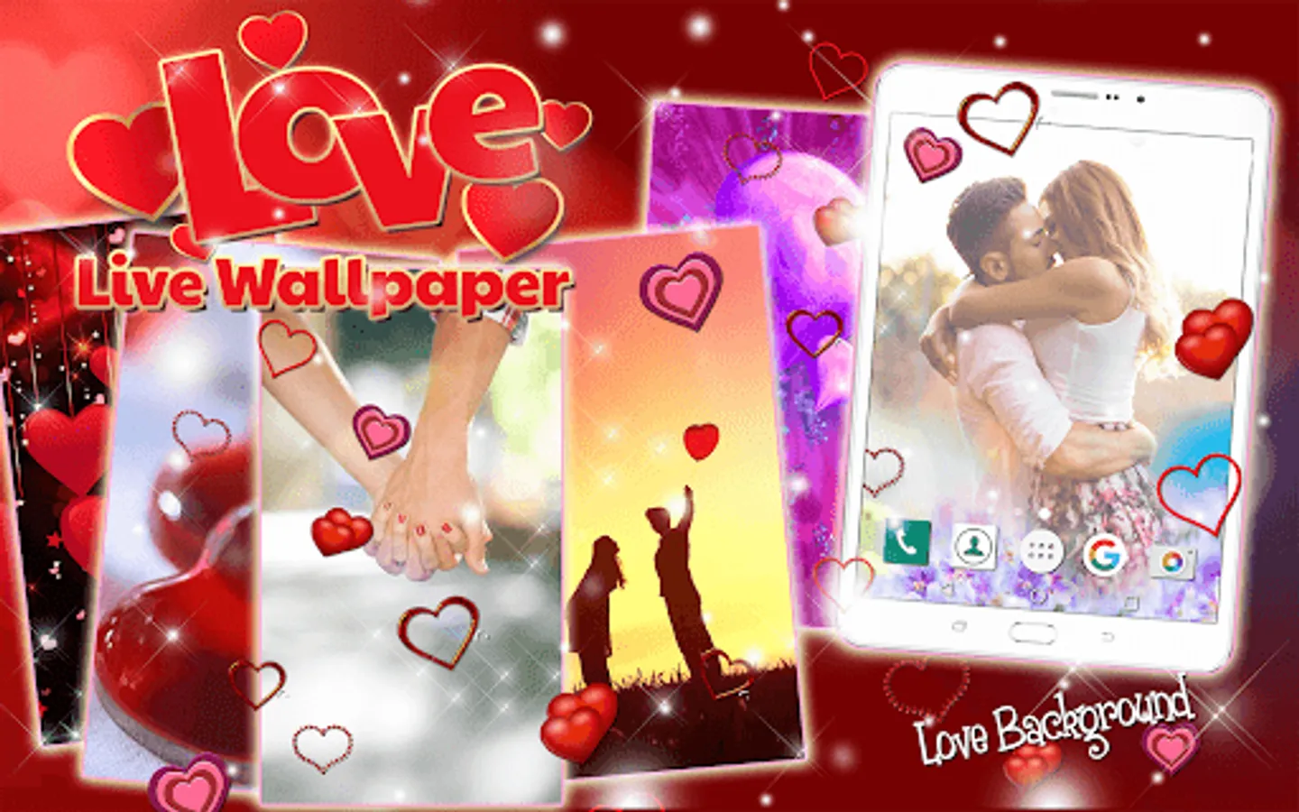 Love is everything! You should spread love and remind everybody of this wonderful feeling. If you enjoy “love wallpaper”, heart images, romance and “love live wallpapers”, we have a perfect app for you. This fun app is called 'Love Wallpapers and Backgrounds' - 'Romantic Pictures' and it offers the “ wallpapers” on the market. Download this excellent app today! It is and easy and you will get the amazing collection of beautiful “moving wallpapers”. Make them your love background, screensaver or lock screen. In love or not, these lovely animated wallpapers will surely stir romantic feelings inside you. Let the “love images” of hearts and love couples inspire you. These are like motivational images that will make you get out there and find your true love. Trust us! Download Love Wallpapers and Backgrounds - Romantic Pictures and you will immediately say 'I love it'