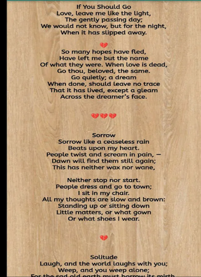 Find love poems, poetry for friends, anniversary poems, poems on marriage, life poems, family poems, romantic poems, wedding poems & more in our Life Poems, Quotes and Sayings App. We have a large variety of beautiful love poems, rhyming love poems, passionate love poems, friendship poems,