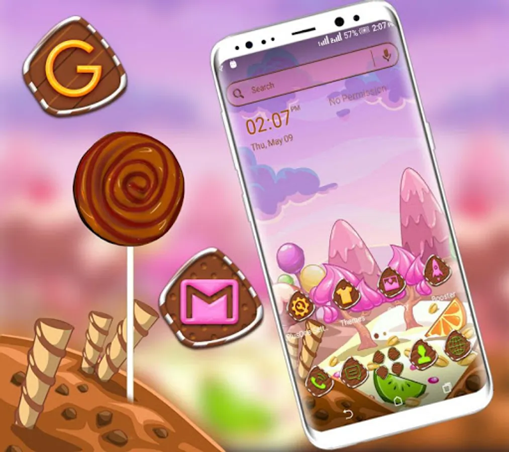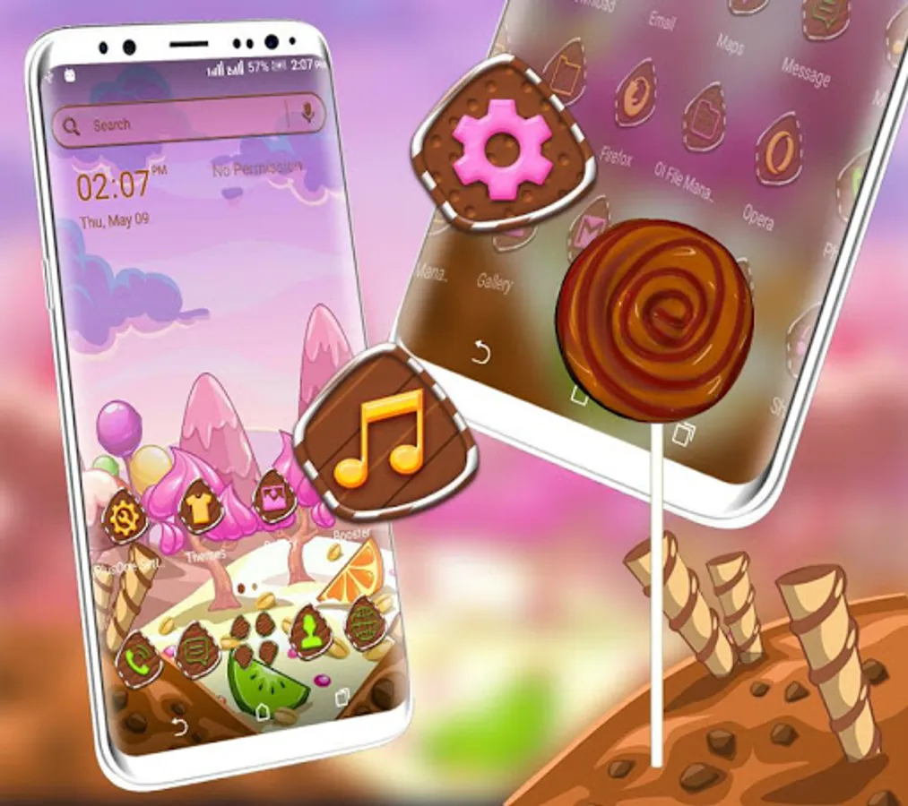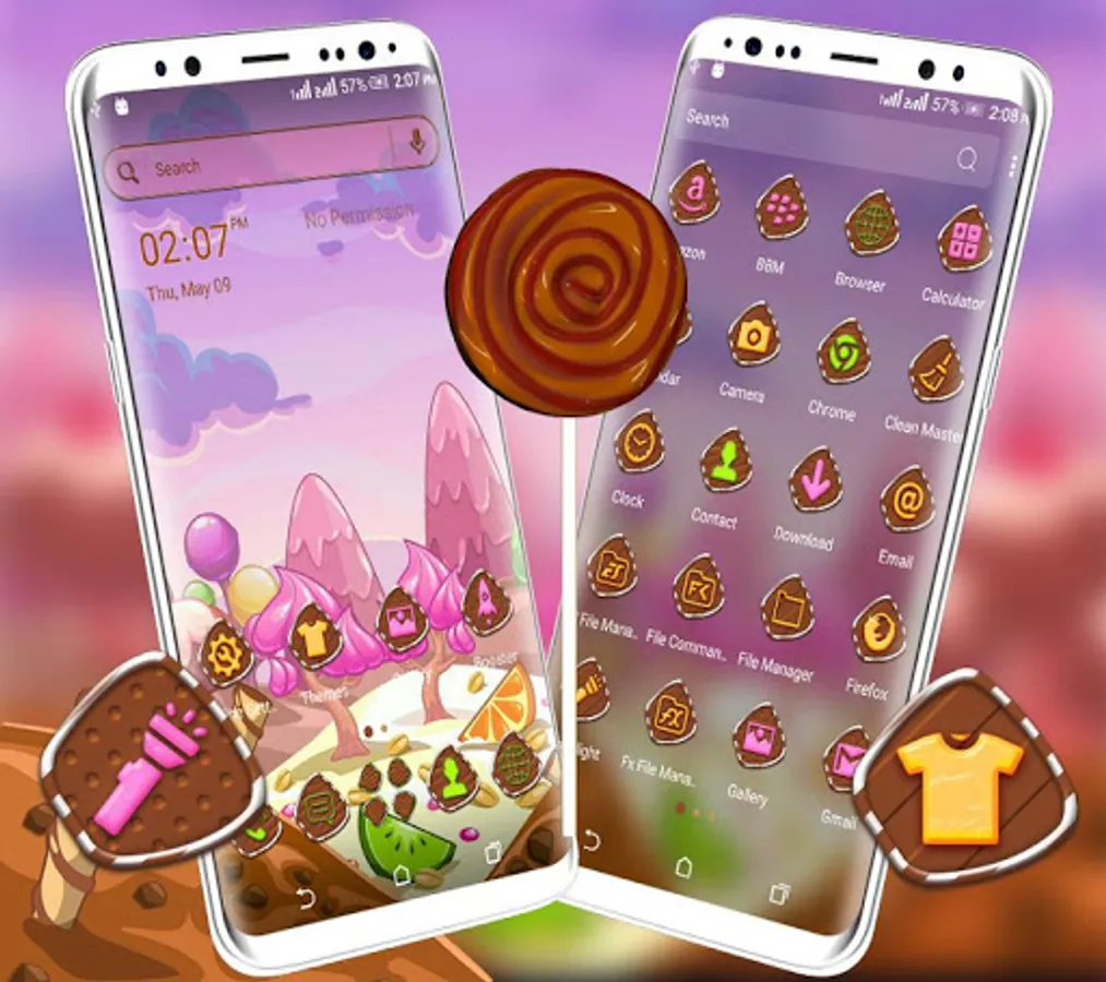 • Get your phone a new outlook altogether with Sweet Pink Choco Candy Launcher Theme.
