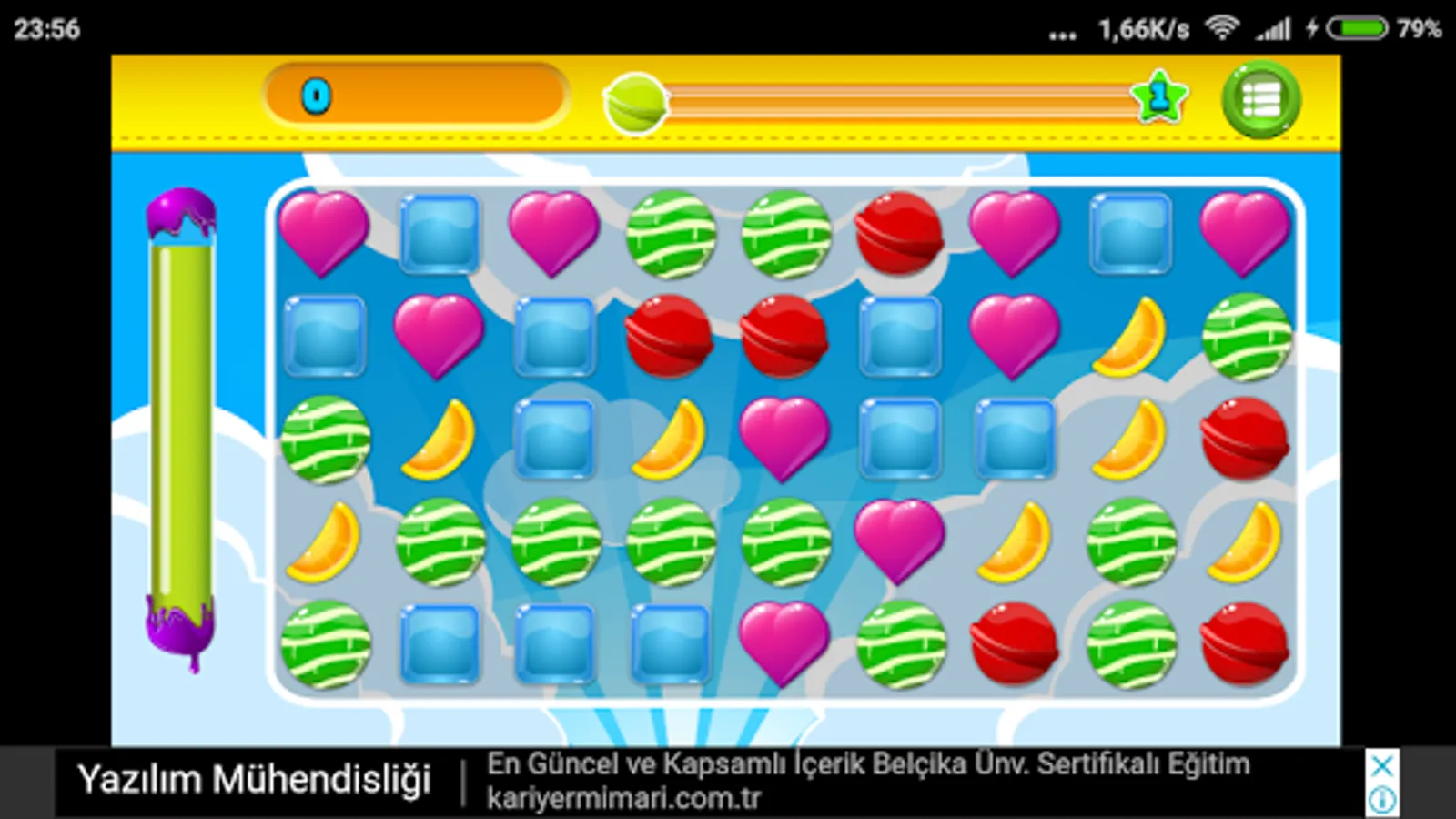 Sweet Candy Draw is a classical game. The rules are very simple: you can only destroy 3 or more items. Destroy can on horizontals, verticals and even at an angle. If you are destroying more than 3 elements, then for each element is given an extra second.