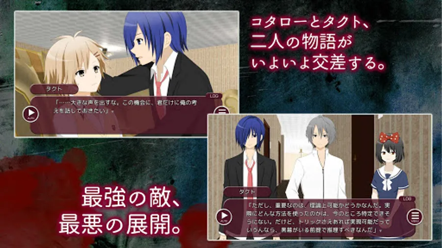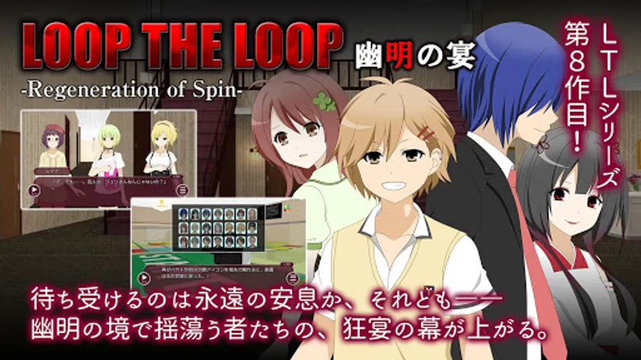 This app contains the 6th "Awakage no Hako" to the 8th "Yumei no Utage" of the feature-length novel game "LOOP THE LOOP" series.