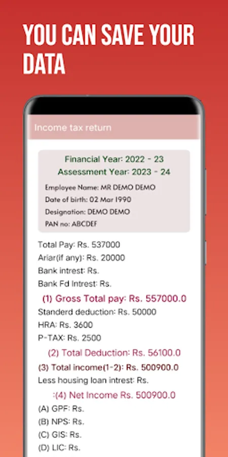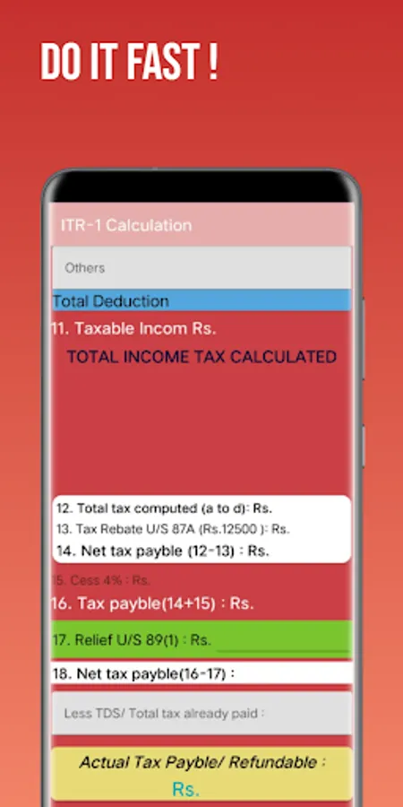This is brand new app. This app is automatic calculate our ITR data. in this app we need to fill data in box this app automatic calculate your data and give result in last. this is amazing app.