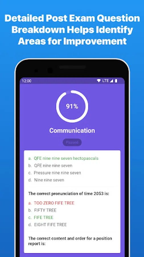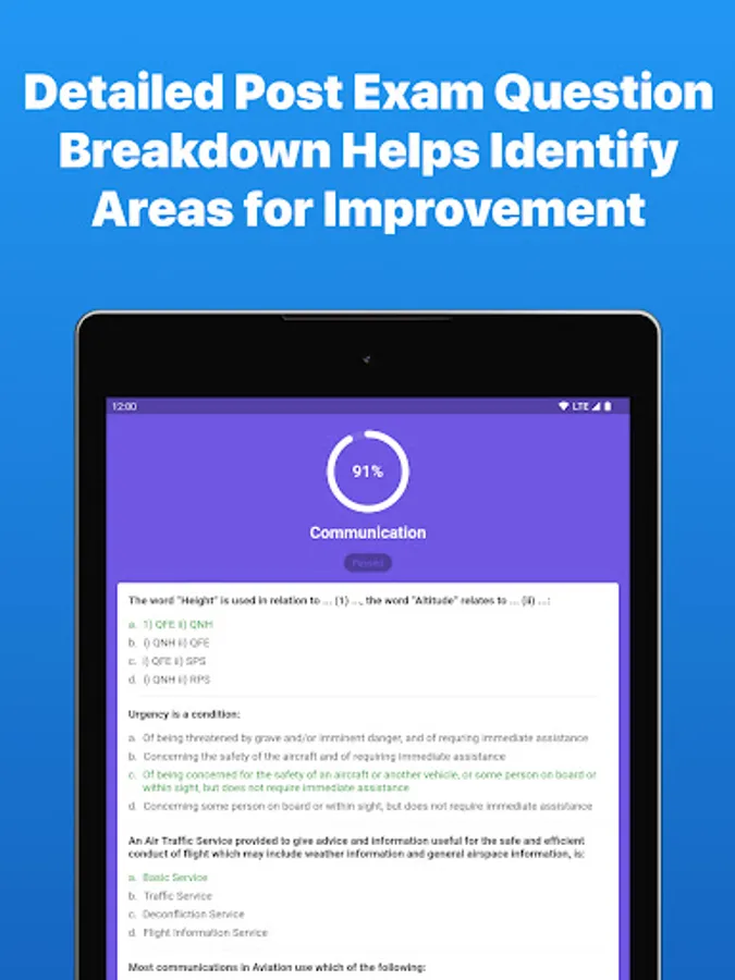 At the end of each exam you'll get a clear breakdown of which questions you answered correctly and which questions need more work so you can spend your ground school time studying more efficiently.