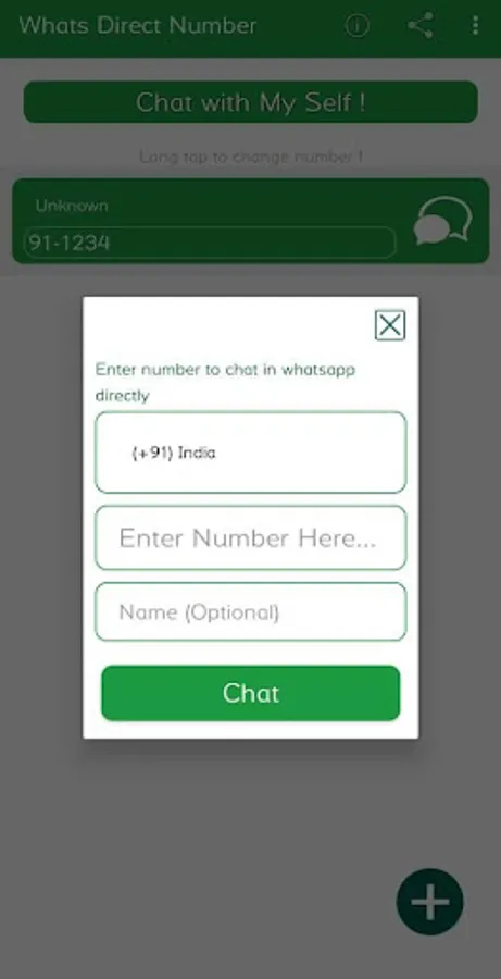 Whats Direct Number is named as to make Direct chat with unknown Numbers(Which you don't want to save in your contacts).
