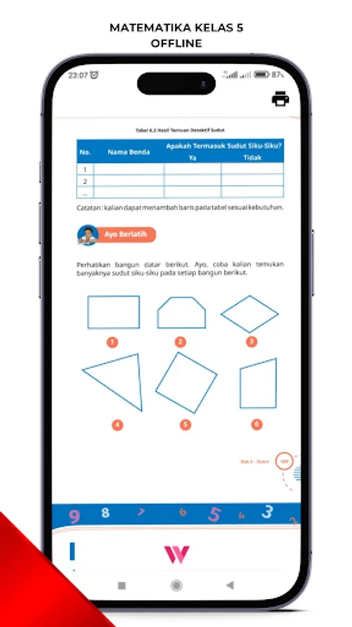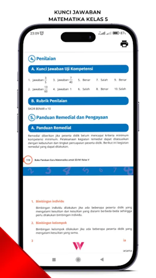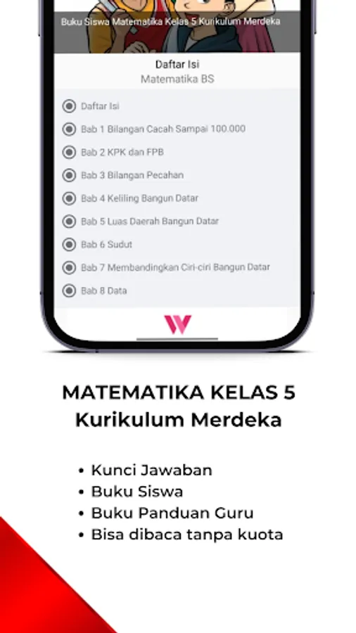 This application contains a math book for grade 5 SD Curriculum Merdeka which consists of:
