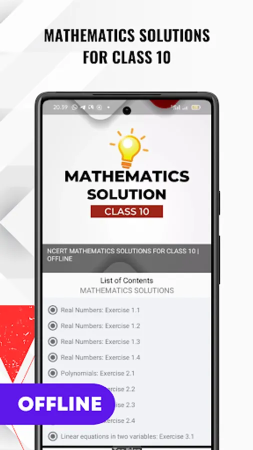 This Mathematics app offline is contain of Mathematics Notes, Mathematics Solutions and Mathematics Textbook Offline for class 10. Made it easy to learn. You'll find Mathematics questions and answer without internet connection.
