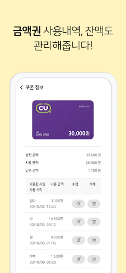 You can know the amount used and the balance by managing the usage history of the amount bill (10,000 won, 30,000 won, etc.).