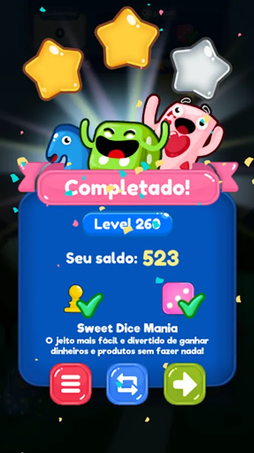 Sweet Dice Mania is a fun game of matching colored dice where you accumulate points that can be exchanged for cash via Pix. Any withdrawal request can take up to 20 days to be approved.