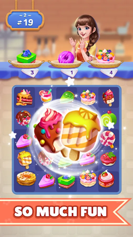 1.Put together sweets of the same kind to merge a new kind of sweet