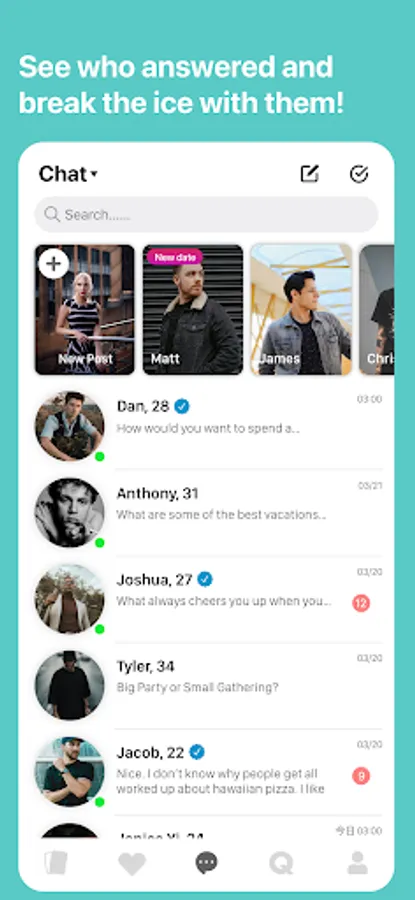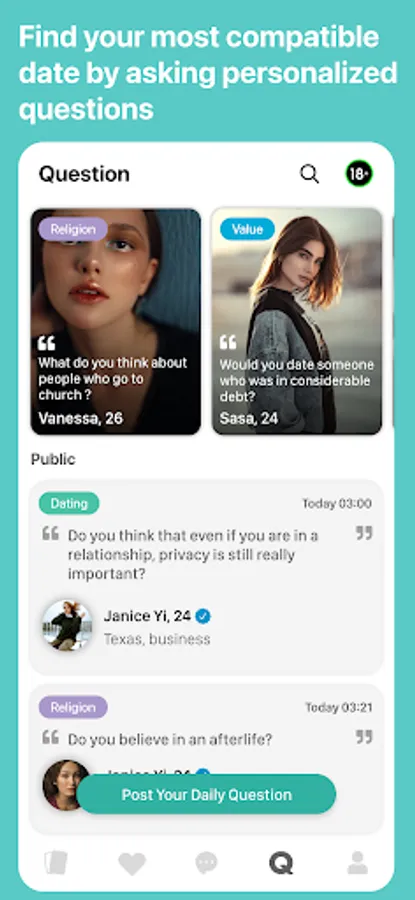 Break the ice and start talking! Get to know more about your potential partners with the help of in-app question feature.